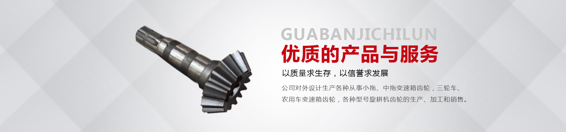 本廠位于省會東南60公里的全國重點鎮(zhèn)——大陸村鎮(zhèn)。本廠在市場內設有銷售公司,經銷工程機械;農用拖拉機;農機具的整機和全車配件。市場緊靠308國道,距青銀高速寧晉路口14公里,交通十分方便。主要從事小拖、中拖變速箱齒輪,三輪車、農用車變速箱齒輪,各種型號旋耕機齒輪、收獲機械變速箱齒輪的生產、加工和銷售。同時加工定做各種直齒輪,傘齒輪,斜齒輪,鏈輪,齒輪軸等機械產品。廠內檢測手段齊全。十幾年來與河北、北京、山東、安徽、河南、吉林、陜西、山西、寧夏、黑龍江、遼寧等省市的企業(yè)建立了穩(wěn)固的業(yè)務關系。產品質量穩(wěn)定、價格合理、供貨及時。